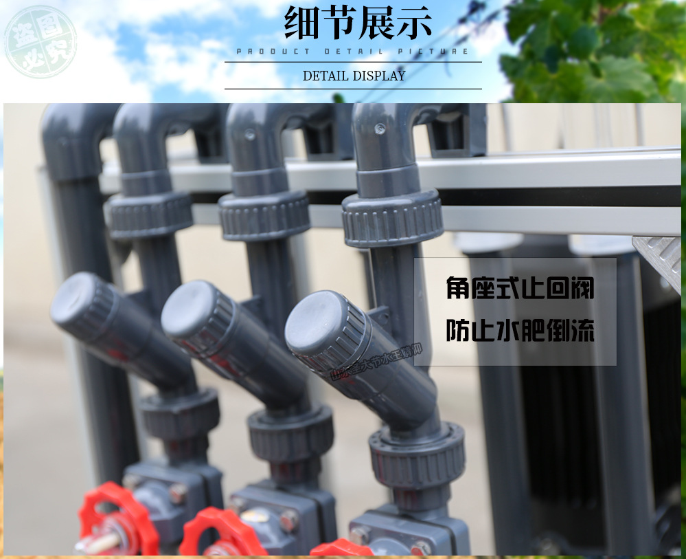 自動施肥機(jī),每路混肥通道上都有一個止回閥,防止水肥倒流。